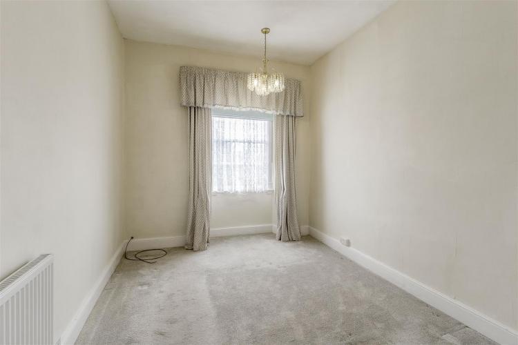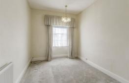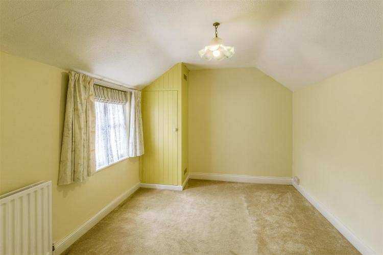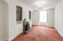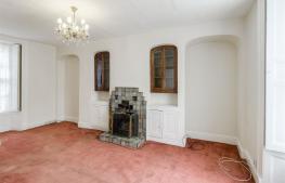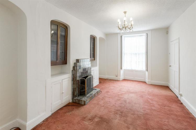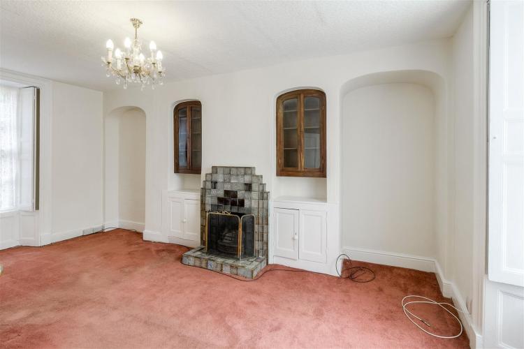Tiled fireplace, period alcove cupboards, wall mounted glazed cupboards, double radiator and windows to the front and rear both with original shutters.