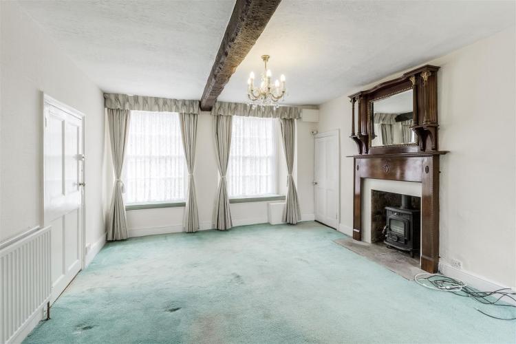 Wood-burner with mantle surround and over-mantle mirror. Ceiling beam, two windows to the front, door to rear garden and door leading to the former shop.
