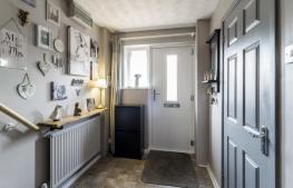 Composite entrance door with double-glazed inset panel. UPVC double-glazed window. Stairs to 1st floor, radiator and doors off to: