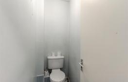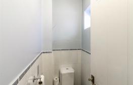 Close-coupled WC, extractor fan and electric fan heater.