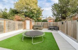An attractive, predominantly paved garden with artificial lawn for easy maintenance. The garden is timber fence enclosed, has a brick built outbuilding and features a good size patio area that is ideal for entertaining.