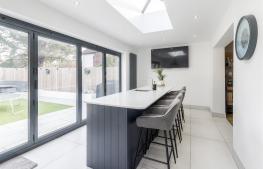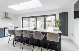 The centrepiece of house is the stylish open plan kitchen that incorporates the extension carried out by the owners in 2021. Featuring a stone top island come breakfast bar, the kitchen offers plenty of work top space along with fitted appliances (to include a Fridge, Freezer, washing machine and dishwasher), range cooker with 6 ring gas hob, chimney style cooker hood, base and wall mounted cupboards and splash backs. At the back of the Kitchen are contemporary BI folding doors that open onto the rear garden, which coupled with the light well in the roof, allows light to flood the room.