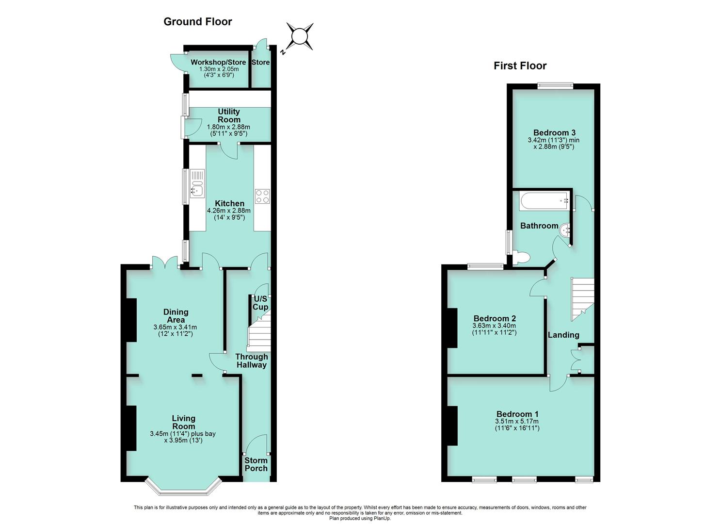 South-easterly aspect rear garden with lawn, timber shed, small workshop/store and store. Rear pedestrian gate.