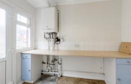 Base cupboards, worksurface, plumbing for washing machine, plumbing for dishwasher, Baxi Platinum gas central heating boiler, ceiling coving, UPVC double-glazed window to the side and UPVC double-glazed door to the garden.