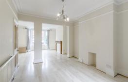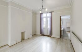 Picture rail, period ceiling coving ,radiator & UPVC double-glazed doors to the rear garden. Two openings leading through to the adjoining living room. Original stripped pine door to kitchen.