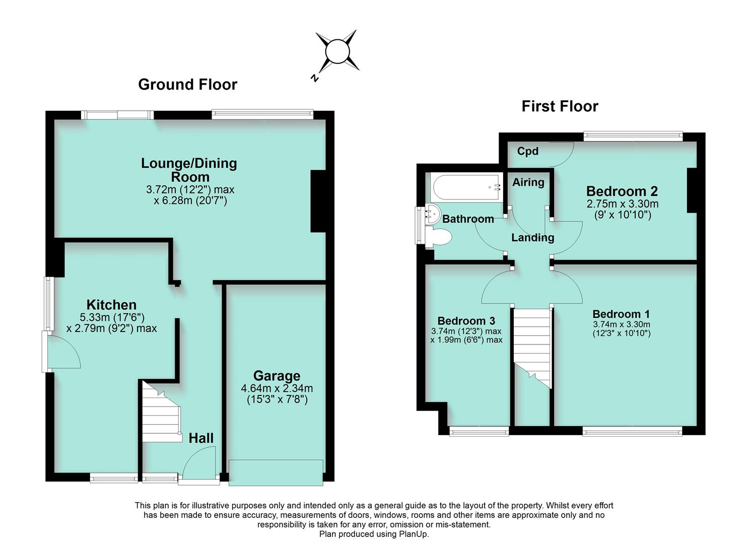 Natural wood floor, loft access (loft ladder, loose laid part boarding and light) and airing cupboard (batten shelving and airing radiator). Doors off to: