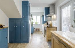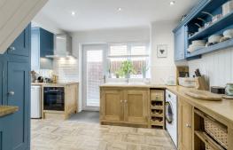Updated by the seller in recent years to now include oak worktops, 1.5 bowl ceramic sink and a range of both wall and base storage cupboards. Bosch ceramic hob, Bosch electric oven and AEG filter hood. Ceiling coving, vertical radiator, plumbing for washing machine, ceiling coving, Vaillant gas central heating boiler, UPVC double glazed windows to the front and side and UPVC double glazed door to the side.