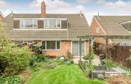 Lawn and shrub borders. Driveway providing parking for a car and giving direct access to the garage. Gated side access on foot to the rear garden.