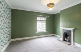 Chimney recess with mantle surround. Double radiator, picture rail, ceiling coving, wooden meter box (with electricity meter and consumer unit) and UPVC double-glazed window to the front.