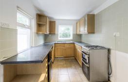 1.5 bowl single drainer stainless steel sink, range of wood fronted kitchen units to include base cupboards, base drawers, wall mounted cupboards and worksurface areas. Ceramic tiled floor, gas cooker point, under-stairs storage recess, UPVC double-glazed windows to the side and rear and UPVC double-glazed door that gives access to the rear garden.