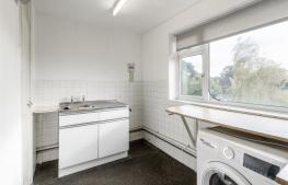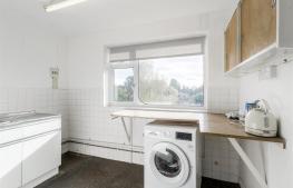 Single drainer stainless steel sink, base cupboard, wall cupboard, walk in pantry, plumbing for washing machine and UPVC double-glazed window to the rear.