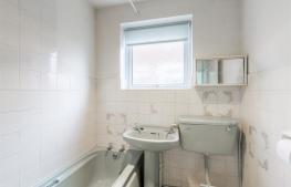 Suite comprising low flush WC, pedestal washbasin and panelled bath with Mira Sport shower over. Airing cupboard with hot water cylinder. Wall mounted fan heater. UPVC double-glazed window to the side.