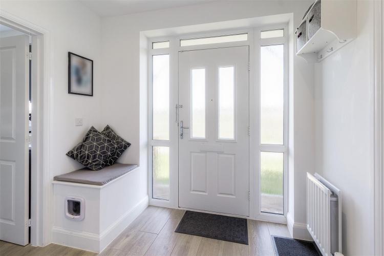 Composite double-glazed front door, insect ceiling lighting, staircase rising to 1st floor landing, double radiator and panelled doors off to all ground floor rooms.