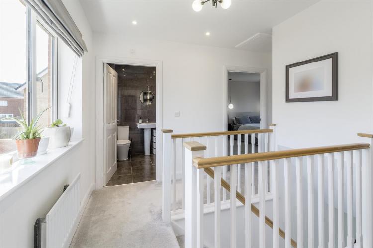 Radiator, inset ceiling lighting, loft access, over-stairs cupboard, UPVC double-glazed window to the rear and panelled doors off to all bedrooms and family bathroom.