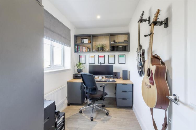 Radiator, ethernet point, inset ceiling lighting and UPVC double-glazed window to the front with lovely outlook over the parkland.