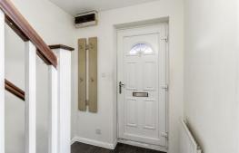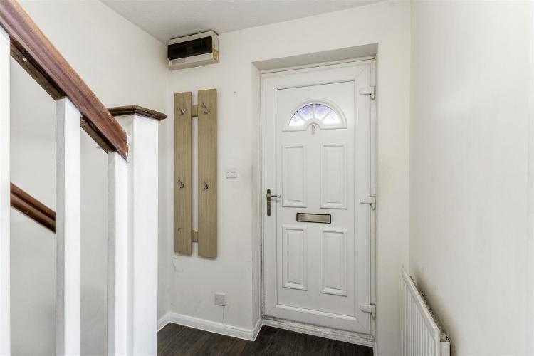 UPVC double-glazed front door, radiator, stairs to first floor landing, under-stairs cupboard and doors off to: