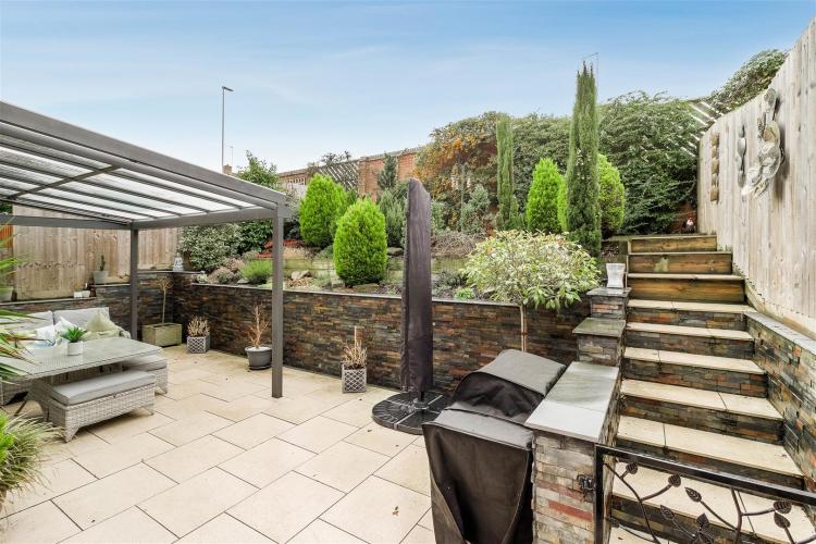 A real feature of the house is the contemporary landscaped garden created by the current owners that enjoys a Southerly facing. Featuring flag stone paved patio area with a smart 'Crocodile' Veranda with electric awning that is perfect for entertaining. The garden is tiered with steps running up the side with an array of plants creating a vibrant and private garden space that is easy to maintain.