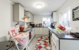 Refitted modern kitchen that features base and wall mounted cupboards, pull out drawers, work tops, sink and drainer, tile splash backs, plumbing for a washing machine, wall mounted gas fired boiler, double glazed window to the rear and double glazed door leading the rear garden. Useful understairs cupboard.