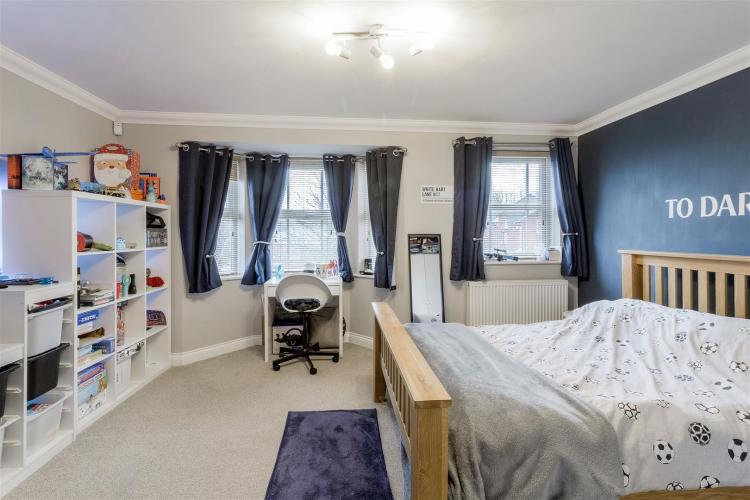 Generous bedroom that features a double glazed bay window, separate double glazed window, fitted carpet and radiator.