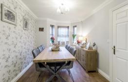 Enter from the front via composite double glazed door into the hall. Wood lamiante flooring, door to the dining room, (leading to all ground floor rooms) under stairs storage cupboard and dog legged carpeted stairs rising to the first floor landing.