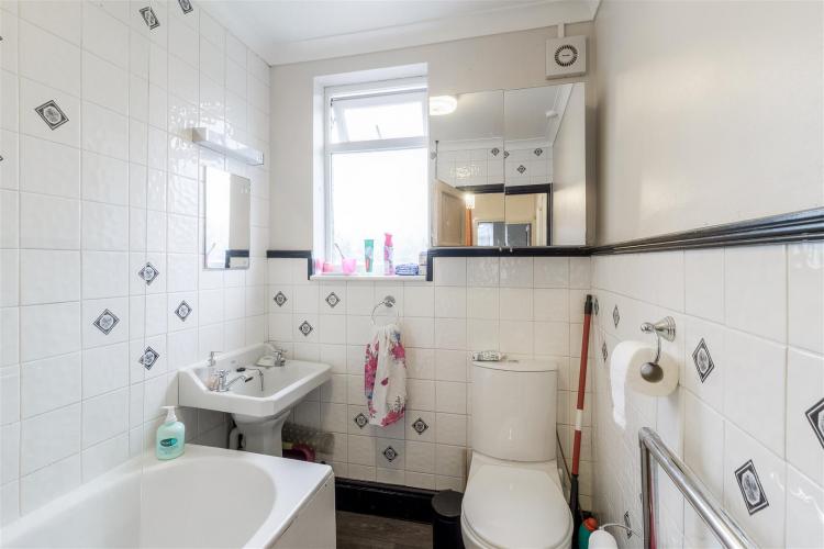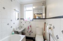 Refitted suite with bath, wash hand basing and WC. Tile splash backs.