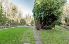 To the front there is an open lawn garden and paved pathway leading to the front door. At the rear of the house is a communal garden shared with the other residents.