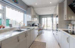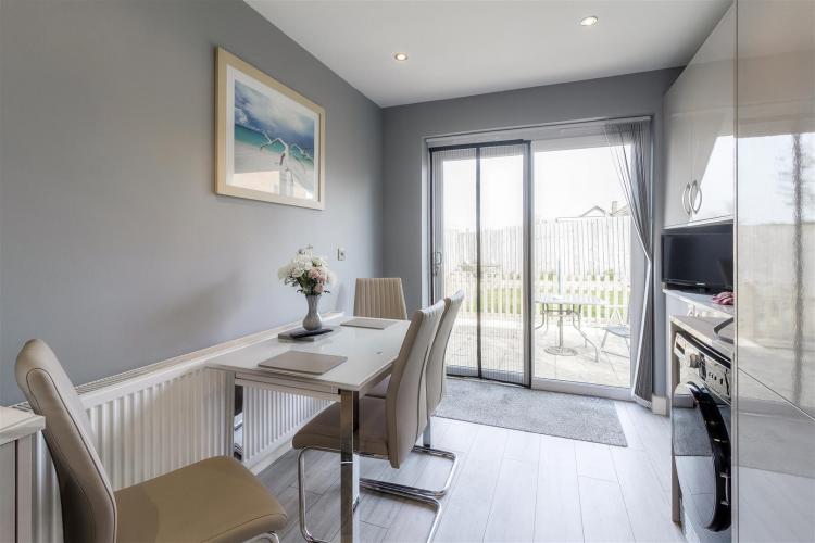 A spacious room with UPVC double-glazed side window and UPVC double-glazed patio door to the rear garden. The kitchen was refitted in 2024 with a good range of units to include base cupboards, base drawers, wall units and work-surface areas. Comprehensive range of appliances to include integrated dishwasher, integrated tall freezer, further integrated fridge freezer, electric oven, fitted microwave, ceramic hob and filter hood. Single and double radiators, plumbing for washing machine, inset ceiling lighting and concealed Worcester gas central heating boiler.