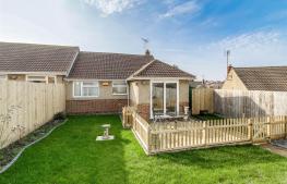 Fully fenced rear garden with paved patio, lawn and shrub borders. Timber garden shed.