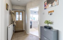 Composite double-glazed front door. Part glazed oak finish inner door to entrance hall.